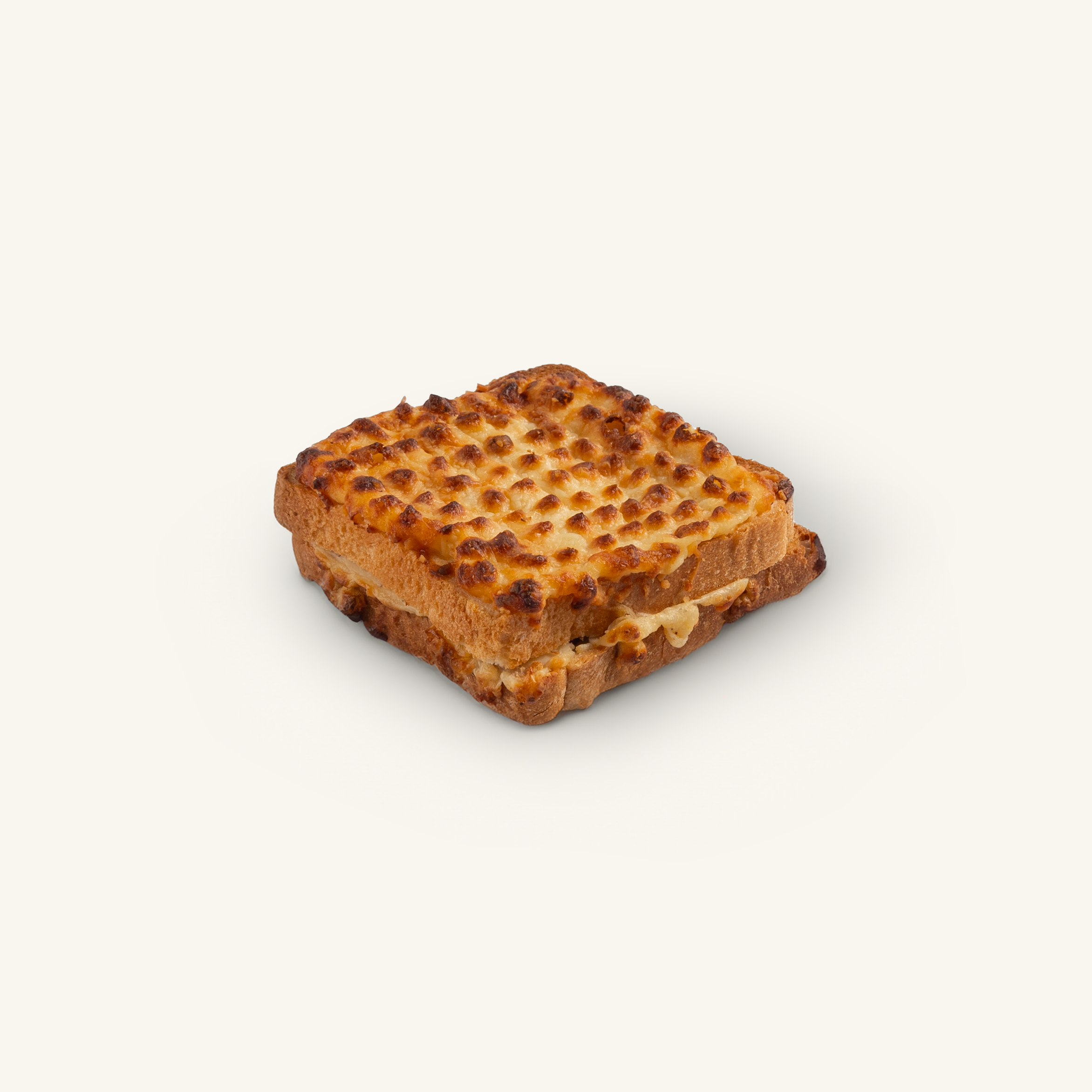 Slice of pain de mie layered with béchamel, ham & cheese and oven baked till golden.