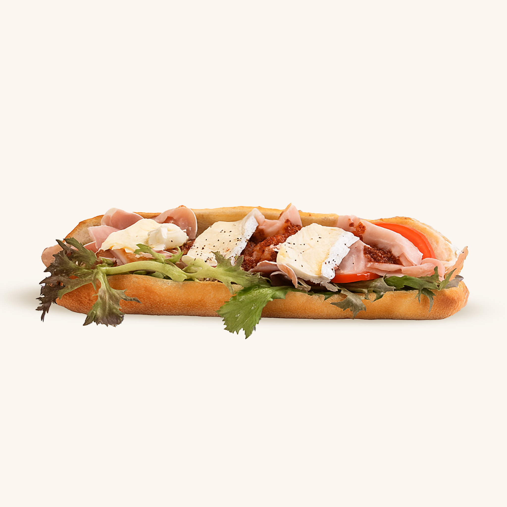 Shaved ham, mixed lettuce, tomato, relish & brie cheese.